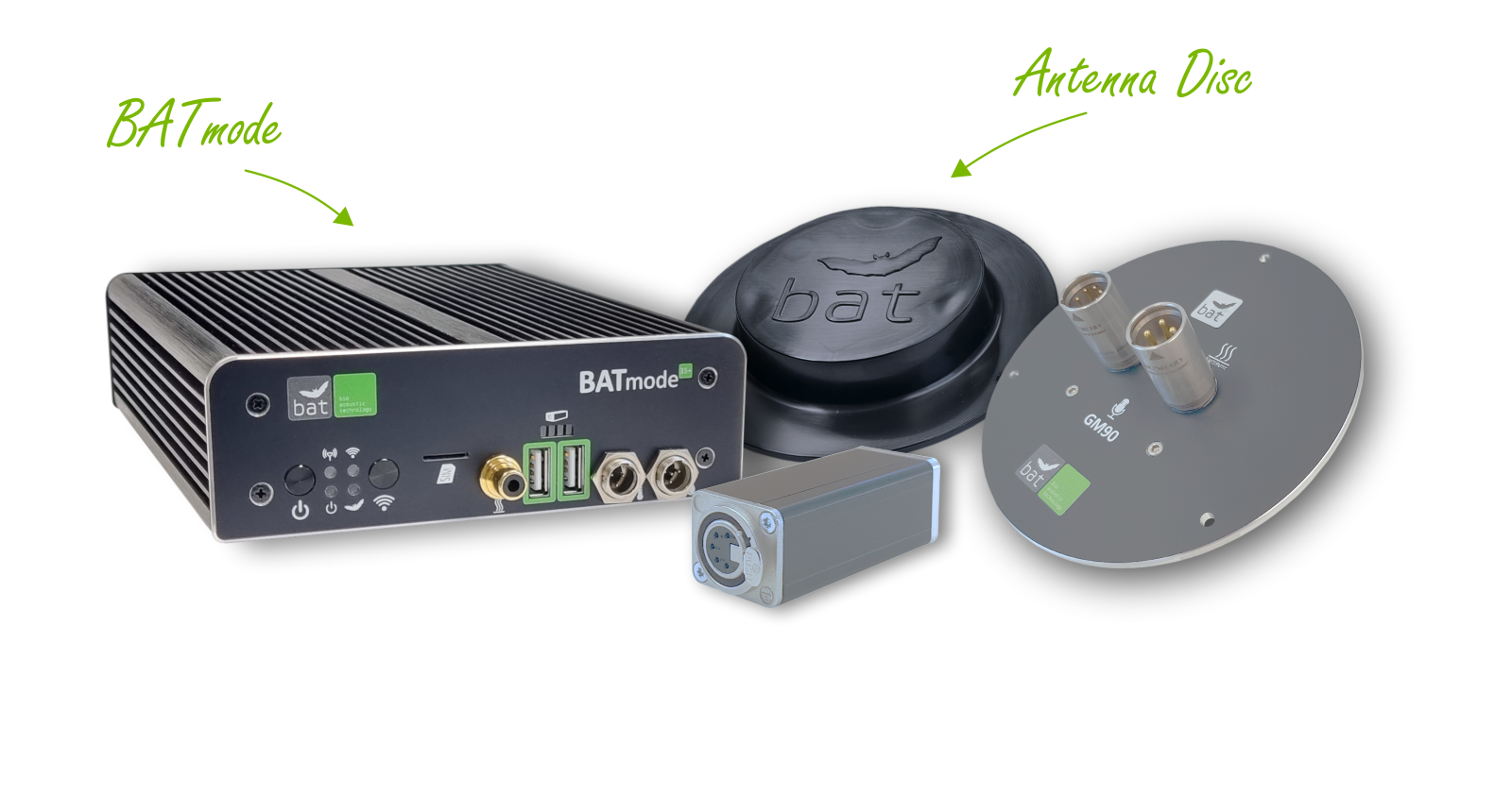 With its extended customizability, the BATmode system can be optimally adapted to the requirements of your study design. Therefore, the BATmode main unit is available in three configurations – BATmode 3B, BATmode 3S and BATmode 3S+. These differ in terms of storage capacity and the integration of a cellular module, among other things. Each variant can be equipped with up to four microphone channels using UltraSoundGates from our partner Avisoft-Bioacoustics. For each microphone installation location, you can of course use the microphone best suited to the specific requirements. Choose between the GM50 and GM90 microphone discs, which were especially developed for monitoring at nacelle height, and the TM10 and TM20 microphones for tower wall or measuring mast mounting. All microphones are as 'Plus' version also available with a microphone capsule protection.